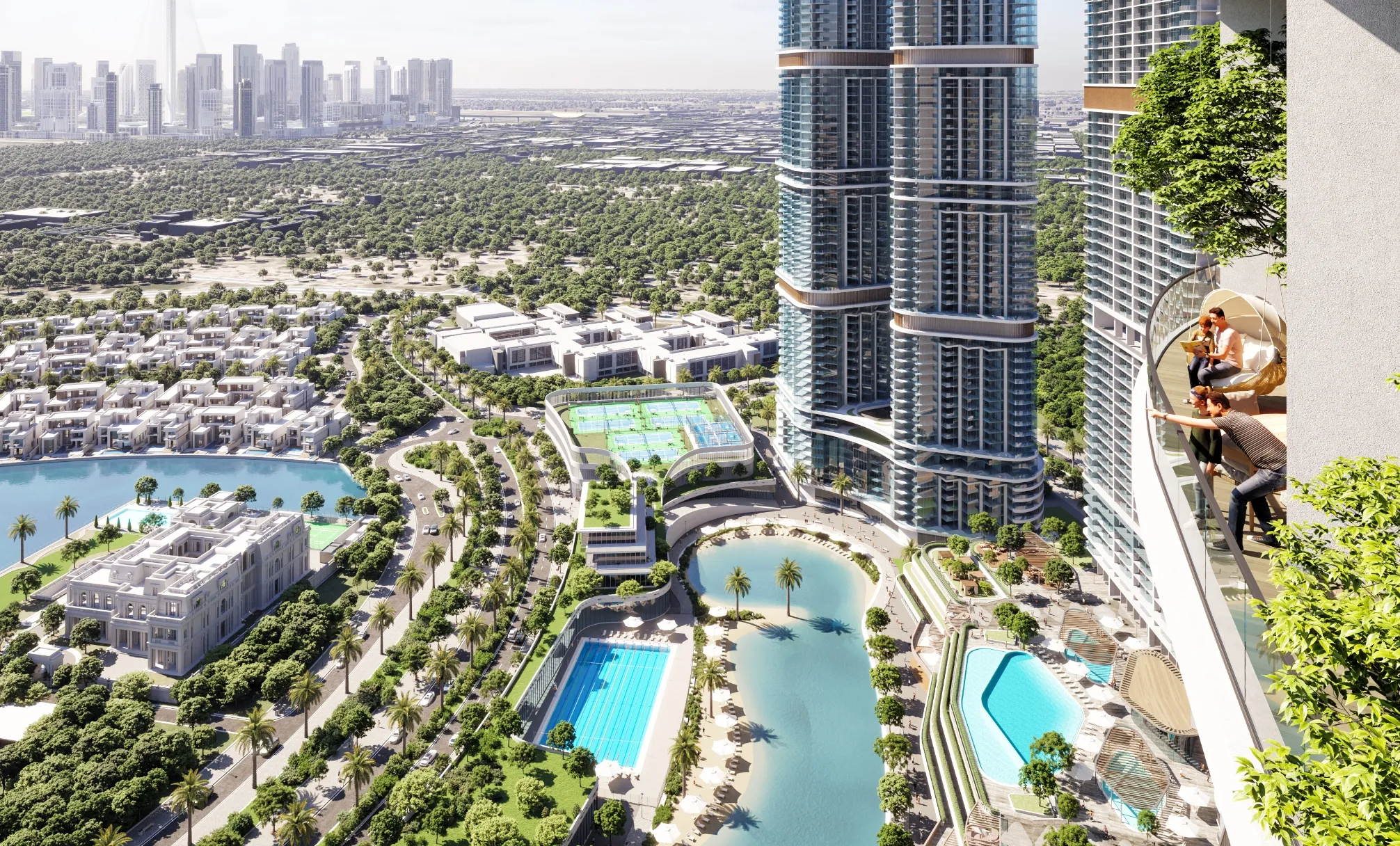 320 Riverside Crescent stands tall with 57 stories of meticulously crafted excellence, offering breathtaking views from every floor. Enjoy stunning vistas of the serene villa community and the shimmering lights of the city skyline. Situated within Sobha Hartland II, 320 Riverside Crescent is just moments away from the Burj Khalifa District, Downtown Dubai, Dubai Mall, Dubai Opera, and Dubai Creek Harbour. The tower features specially designed residences, including 1-3-bedroom apartments, each offering expansive, all-encompassing views that elevate the living experience.