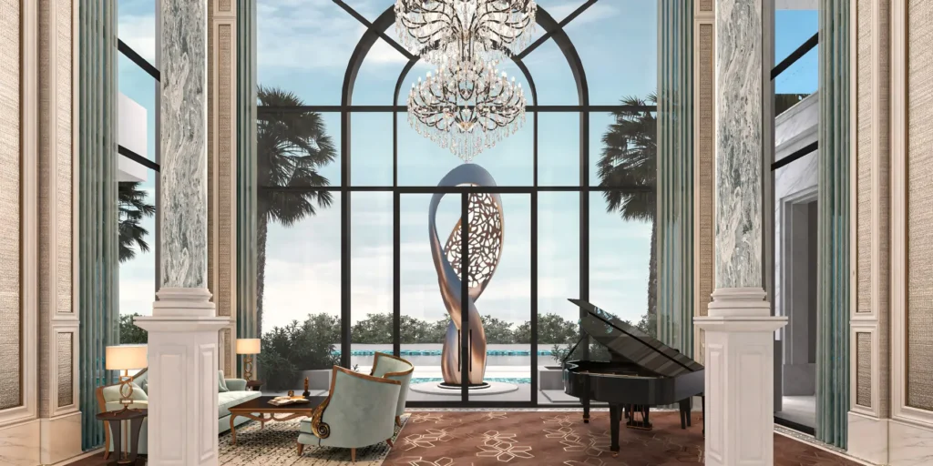 Revel in ultra-luxury amenities designed to enhance your daily life. Each mansion is a modern sanctuary featuring grand halls, a home cinema, private office, entertainment rooms, two pools, state-of-the-art fitness center, private elevator, an opulent rooftop terrace, and a spa zone with Turkish Hammam, jacuzzi, ice shower and more. Plus, you’ll enjoy direct access to the breathtaking crystal lagoon, just steps from your doorstep.
