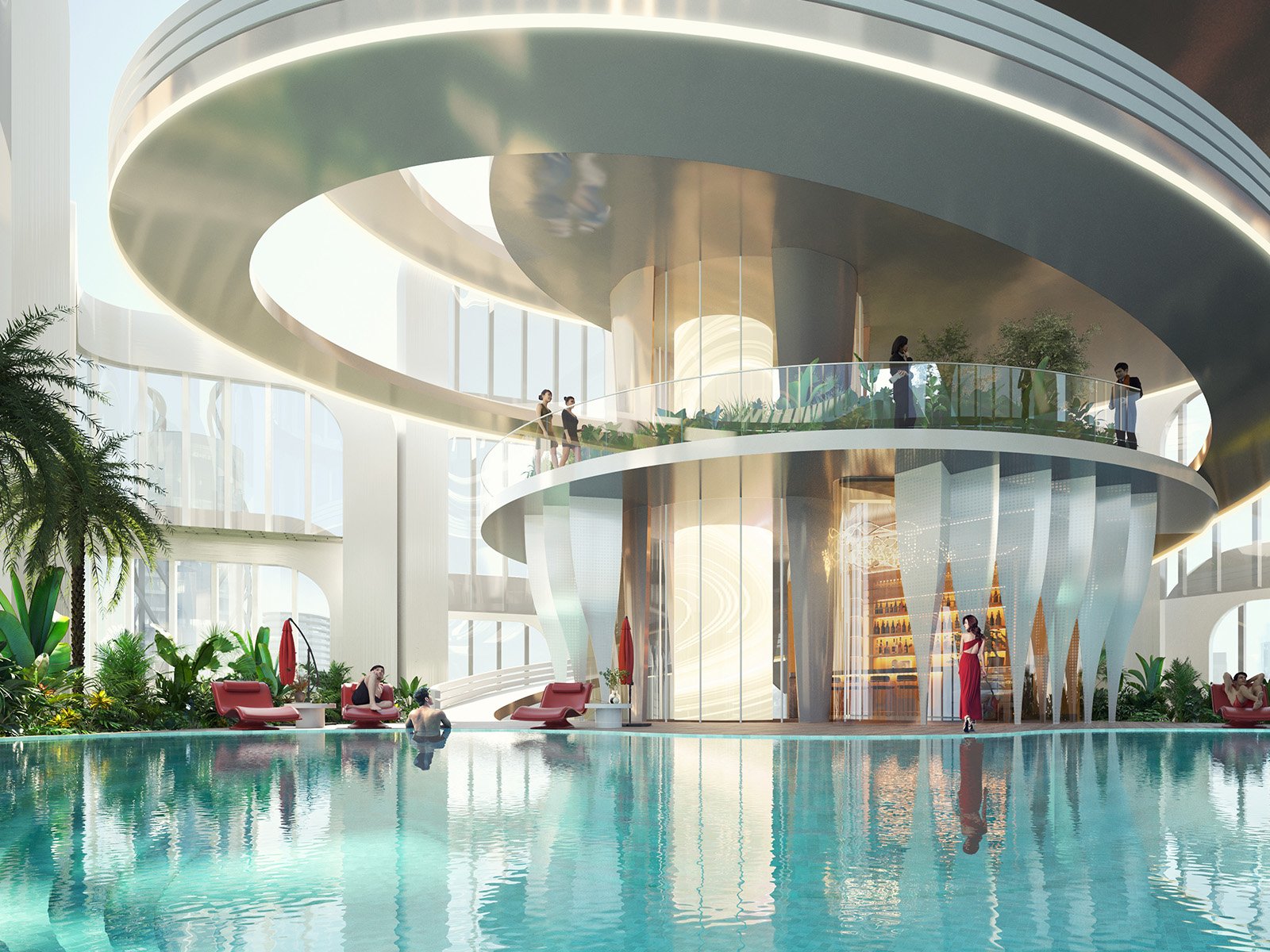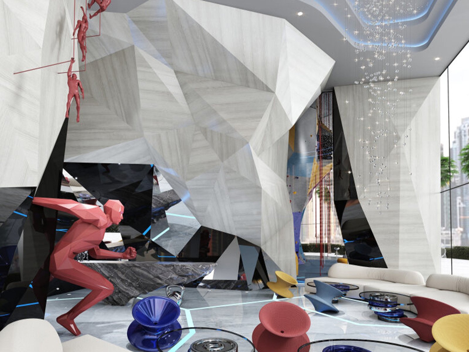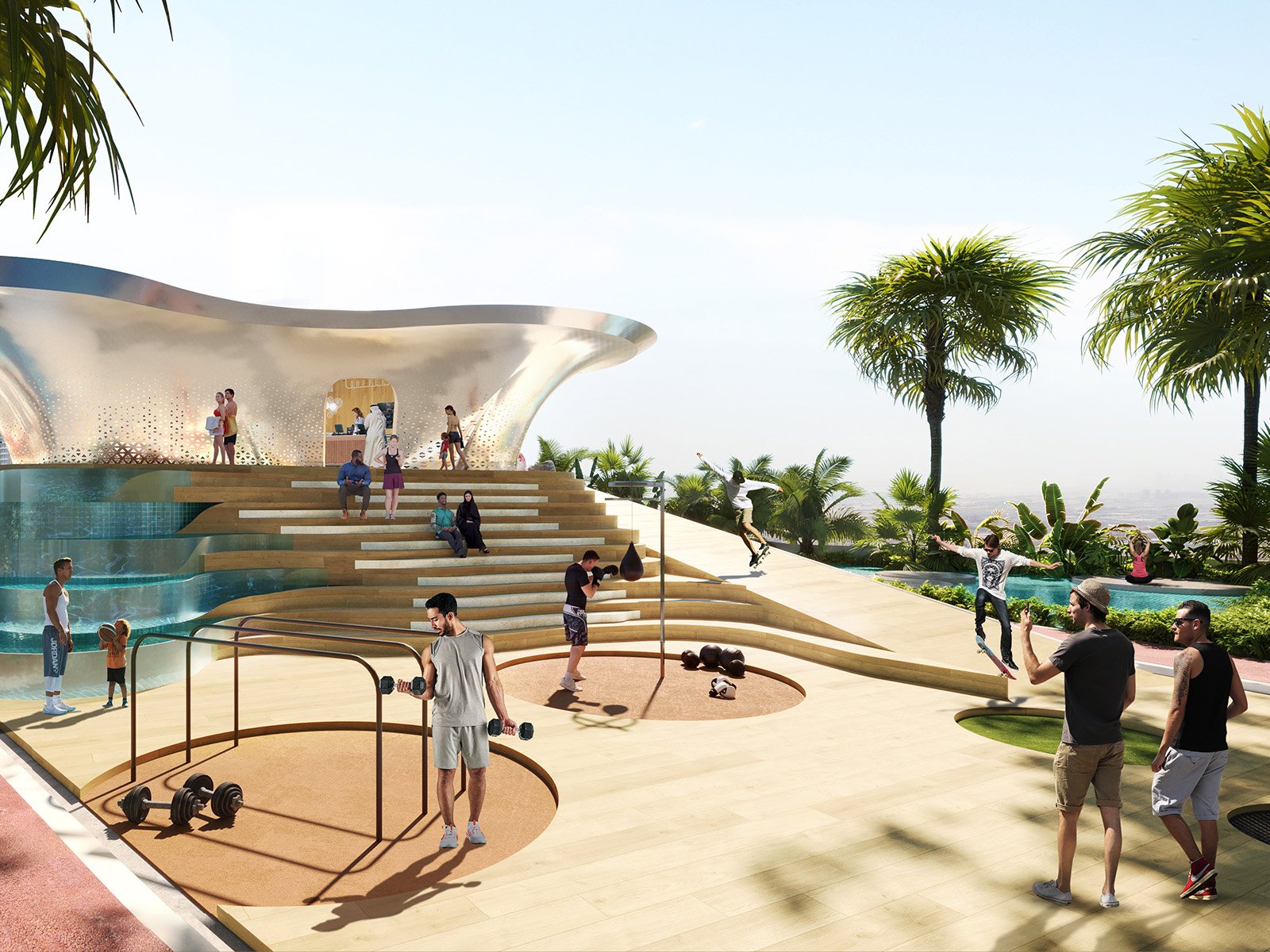 But it’s not just the living spaces that make Volta exceptional. The tower and its adjoining parking podium are home to an extraordinary selection of amenities meticulously curated to cater to both an active and relaxing lifestyle. Among these offerings are lap pools, a state-of-the-art boxing ring, a climbing wall, a jogging track, ethereal sky yoga spaces, a luxurious spa, and much more. Moreover, each apartment on levels 49 to 58 boasts top-of-the-line finishes, discreetly integrated gym facilities and innovative mirror trainers.